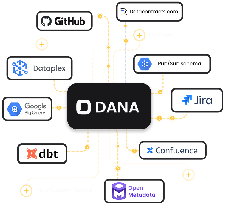 DANA connects to the sources where your knowledge already lives.